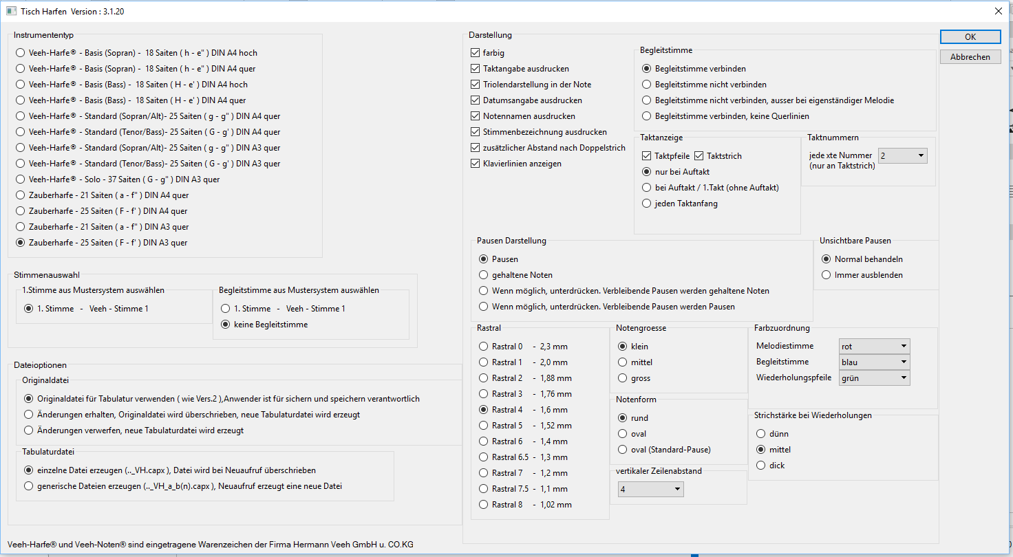 - Veeh-Harfe® und Veeh-Noten® sind eingetragenes Warenzeichen der Firma Hermann Veeh GmbH & CO.KG