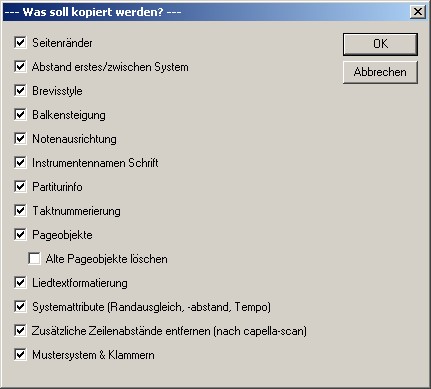 Mit diesem Skript kann das Layout einer Partitur oder Teile davon in die aktuelle Partitur kopiert werden.