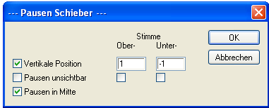- In Unter- und Oberstimmen können Pausen vertikal verschoben werden.