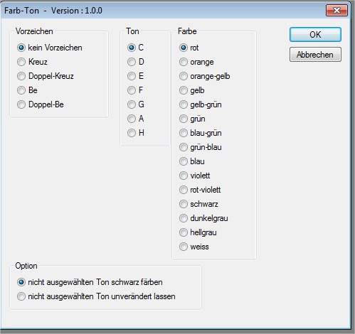 Einfärben eines auswählbaren Tons in einer wählbaren Farbe in der gesamten Partitur