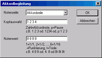 - Bei der Kopfauswahl und dem Notenwert werden die einzelnen Noten durch einen Leerschlag getrennt.