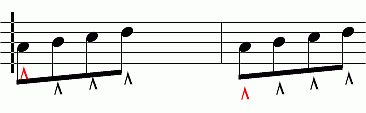 - Ausnahme: Staccato/Tenuto oder Kombinationen davon
