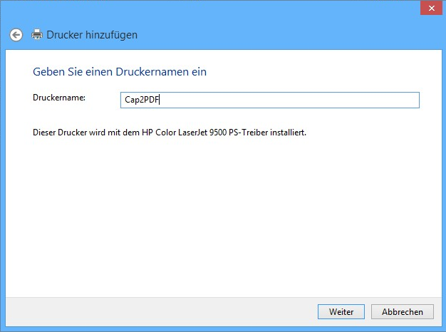 Bemerkung: Zum Einrichten des neuen Druckers Cap2PDF sind Adminrechten erforderlich!