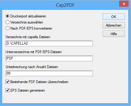 Ausdrucken von capella Dateien nach PDF oder EPS