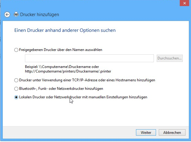 - "Lokalen Drucker .... hinzufügen" - Weiter