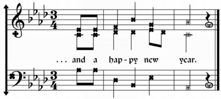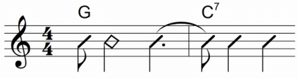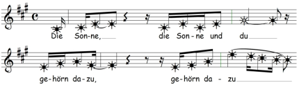- Ganze, Halbe und Viertelnoten mit runden Klammern = Kreuz