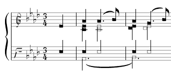 Mit dieser Schriftart können Tremolo-Noten (8tel, 16tel, etc. mit leerem Kopf) dargestellt werden. Den eingegebenen Noten quadratische Notenköpfe zuweisen.