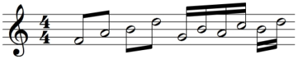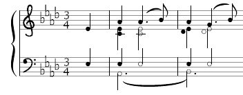 - Ganze, Halbe und Viertelnoten mit Begrenzungslinien und runden Klammern = Triangel