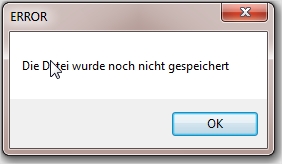 Wurde die Datei noch nicht gespeichert, erfolgt eine Fehlernachricht.