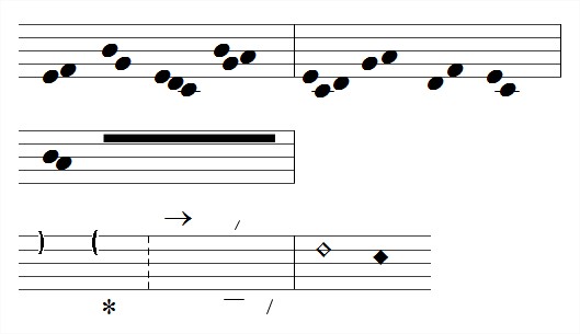 Für Capella 9 habe ich die Anordnung auf "hinter Noten" gesetzt,damit der Liedtext nicht springt. Bitte die Symbole mit "manueller Platzierung" aus der Galerie einfügen.