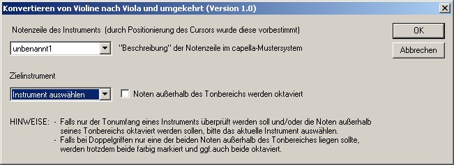 Konvertieren der Notierung einer Violine in die einer Viola (Bratsche) und umgekehrt.