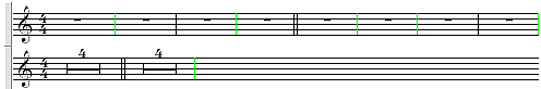 - Pausen werden jeweils zwischen den festen Taktstrichen zusammengefasst