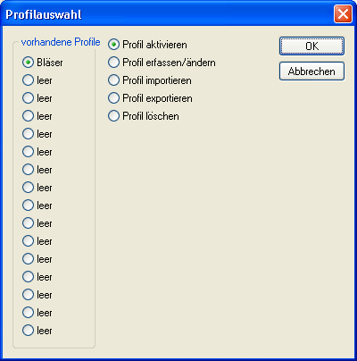 Anlegen und Auswahl von unterschiedlichen Stimmumfang Profilen für die Partiturinformation
