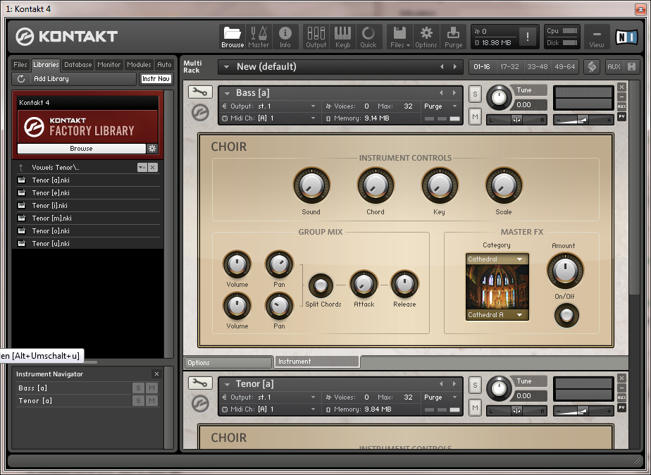 - In der sich jetzt offen befindlichen Kontakt 4 Oberfläche siehst Du als Instrument Bass a.