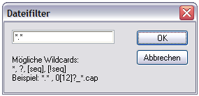 Bemerkung: Leider ist es mit dem Filedialog von Capella nicht möglich, Wildcards zu setzen. Aus diesem Grund muss das Filter in einem zweiten Schritt abgefragt werden.